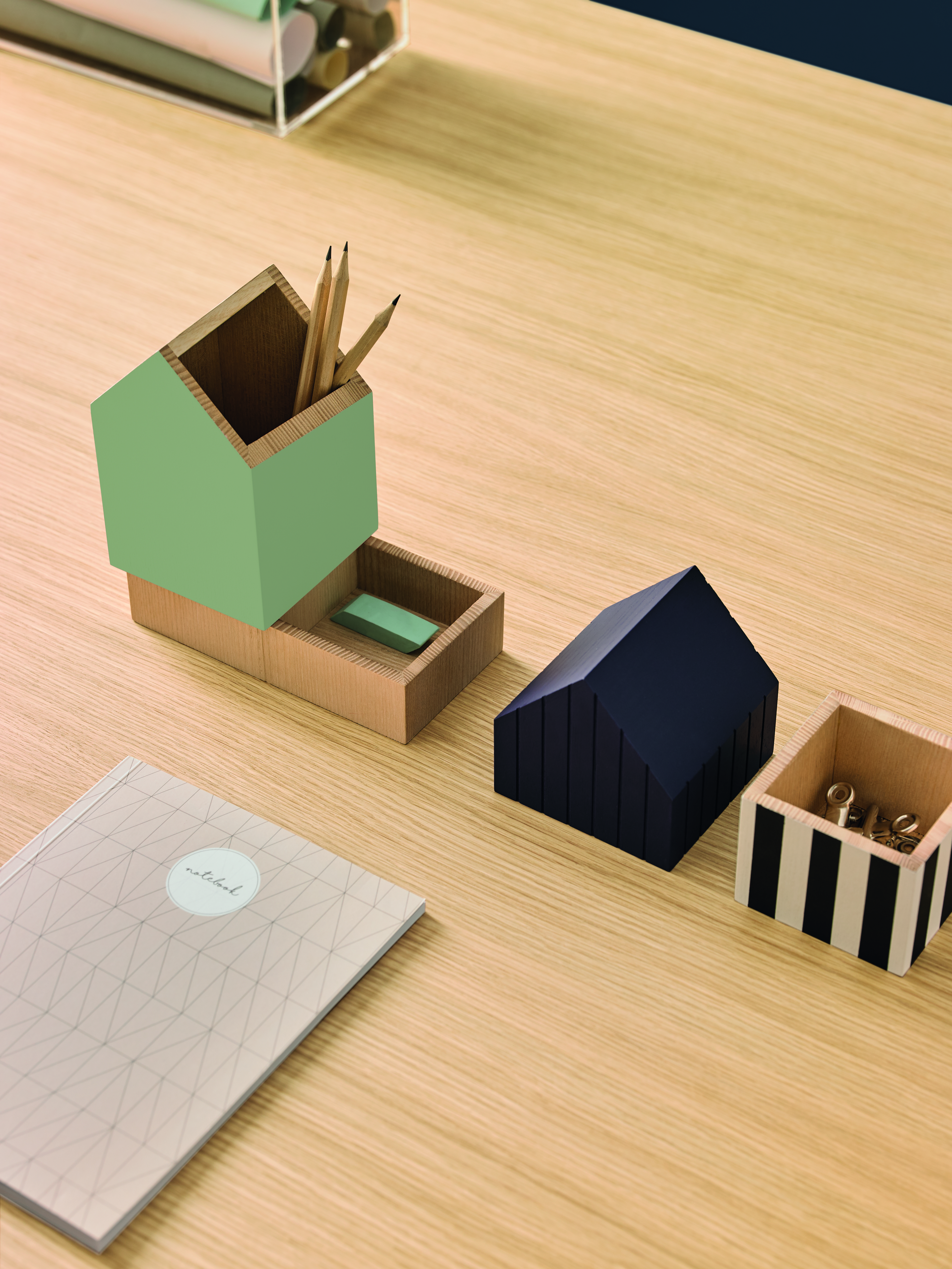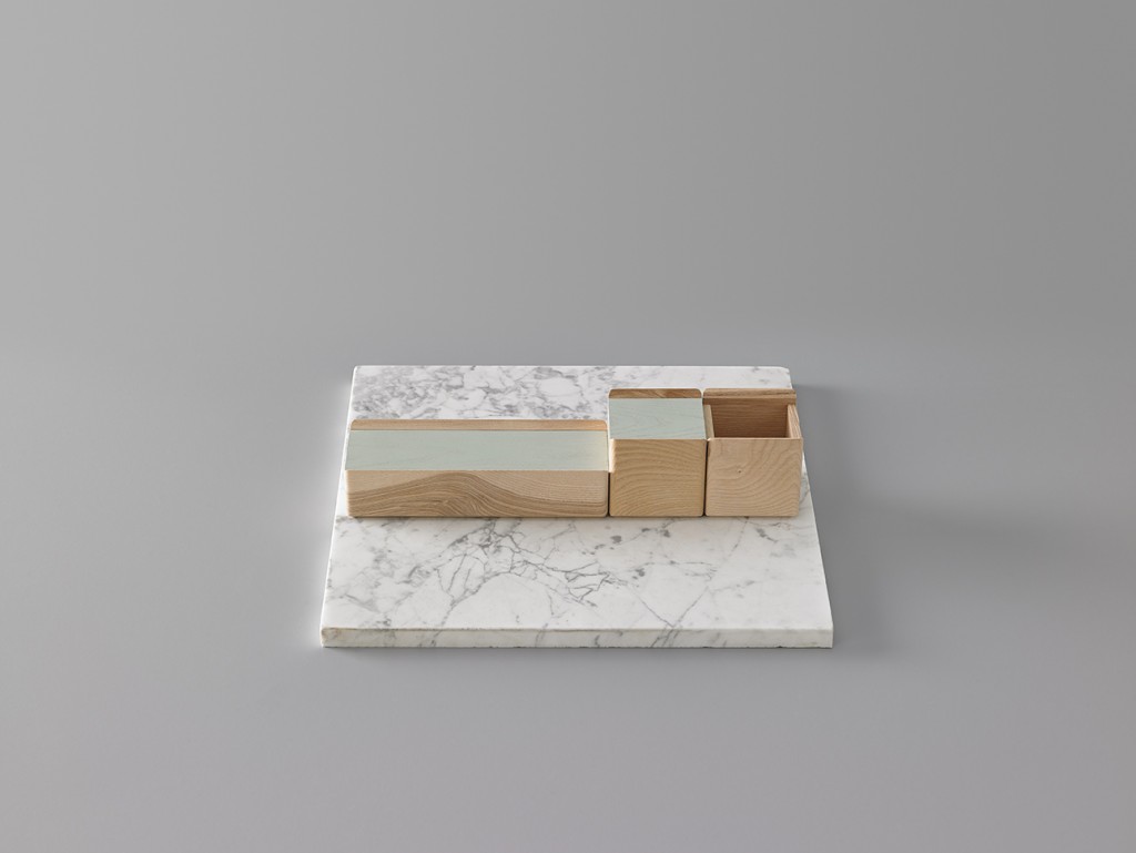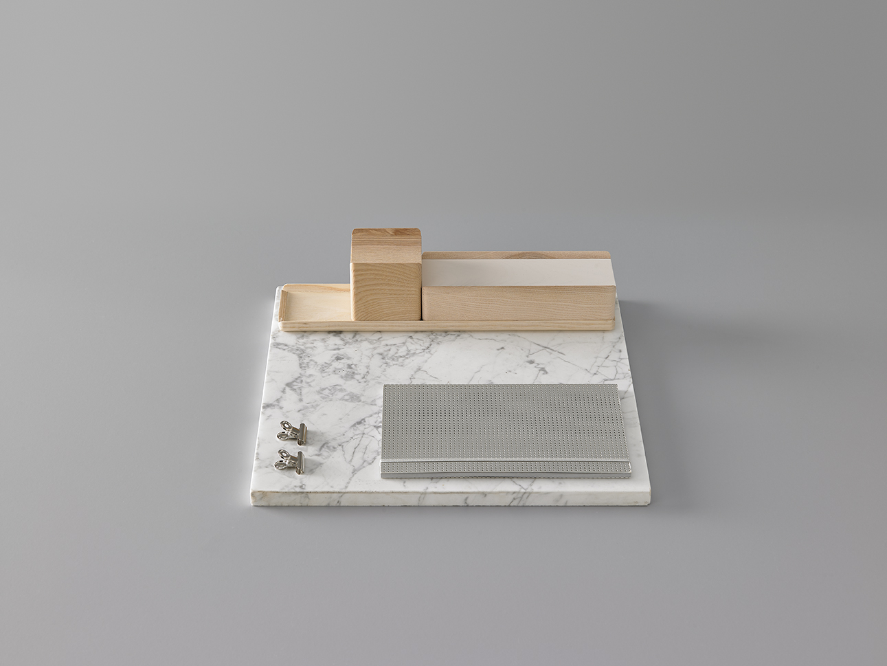 Collection of tray and small boxes and that can be used as accessories on the work desk. These boxes enthuse with lids in soft tones (natural, pastel grey and pastel pink), they can be combined arbitrarity.